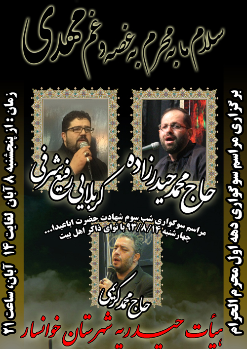 ضمن آرزوی قبولی عزاداری های شما عزیزان،توجه شما را به دیدن بخش اول گزارش تصویری مراسم هیئت حیدریه شهرستان خوانسار جلب می کنیم:
